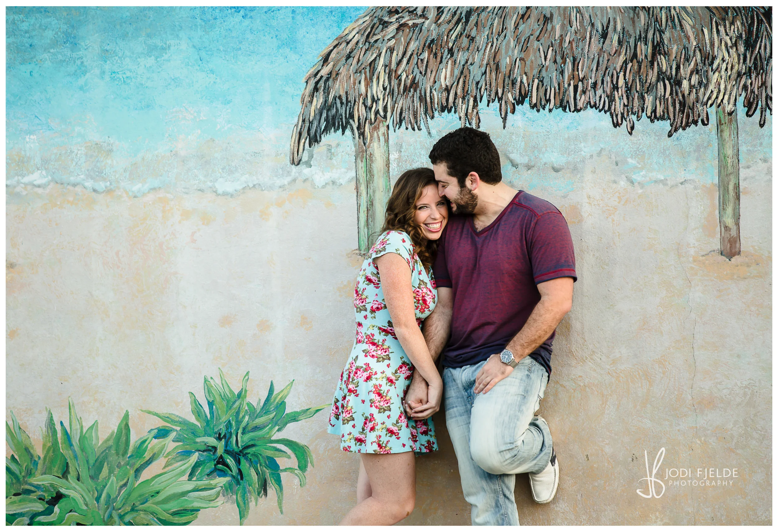 Julia and Elias have some mad crazy chemistry! We were able to sneak in an awesome engagement session just weeks before their Mexico Elopement! We had such a blast strolling the streets of Artsy Dania Beach and I just love the way they unknowingly coordinated their outfits to the backdrop.